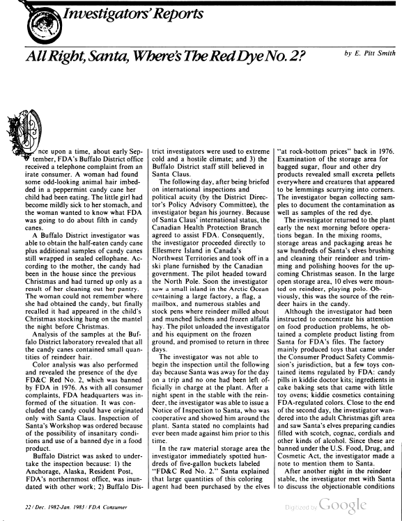 Santa must have a robust regulatory affairs and quality team to manage all of the requirements for his global operation. However, he once ran into an FDA problem when his candy canes contained an unlawful colorant: Red Number 2. This lead to a plant inspection, which discovered additional problems.